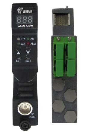 GSDT-OSW系列光切换开关,模块式设计,具有A/B路切换功能,提供用户光纤网络中不同设备之间光功率的监控和光切换功能 。在主路设备光功率异常时自动切换至次路。用户可以自行设置切换阀值,灵活控制当前光网络。当主路工作光功率恢复到用户设定的阀值,则光切换开关自行从此路切换回主路,恢复正常运行。无论是主路或者次路输入光功率低于默认值,模块都会有报警提示,可以通过前面板的操作或者网管软件看到报警信息。