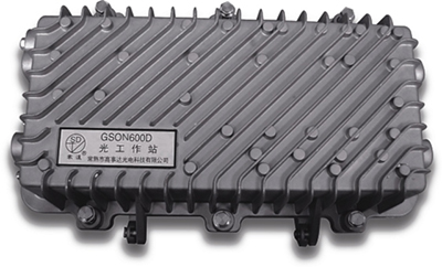 GSON600工作站适用于双向HFC FTTB工程的应用,末级采用砷化镓模块输出,具有四路高输出,能大大减少光节点和用户端之间的设备,提高网络的可靠性,可直接向400~500户用户提供高指标的信号。并且本机配有状态监测接口,可监测本机的工作电压、电流、光接收功率、光发送功率、群变换电压、射频等参数指标。并可对反向通道进行-6dB、全通、关断三种状态远程设置。
